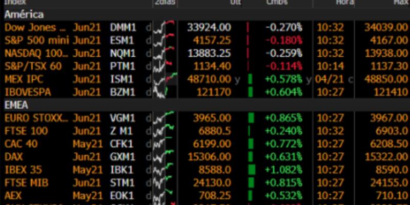 En el ámbito internacional, los principales índices bursátiles inician la jornada con leves bajas.