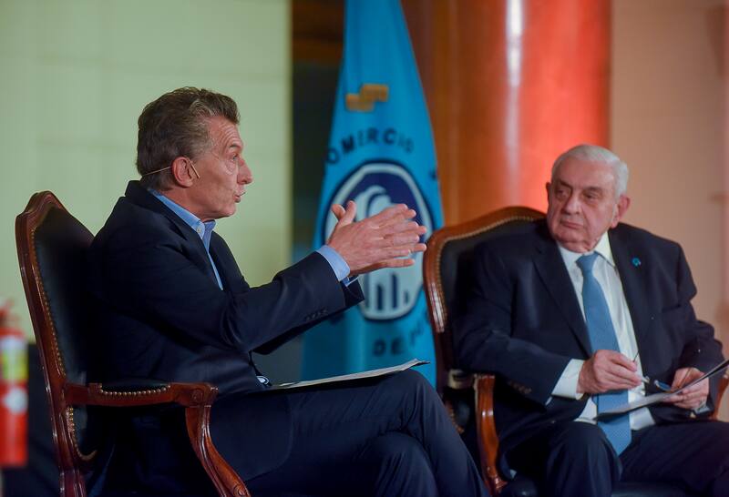 Mauricio Macri y Adelmo Gabbi en la Bolsa de Comercio