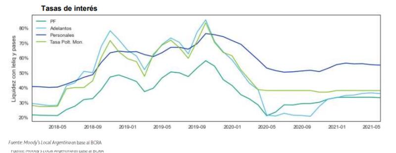 En tanto, Moody's Local Argentina espera que en 2021 los elevados niveles de liquidez, que se encuentran en máximos históricos, se mantengan estables dada la débil recuperación esperada en la demanda de crédito y el actual entorno operativo que comprime los márgenes de rentabilidad.
