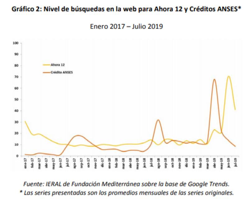 "Las consultas por los créditos ANSES manifestaron un importante incremento en abril, mientras que el aumento en las búsquedas por Ahora 12 coincide con el momento del lanzamiento del programa", escribió Vico. "Este hecho se puede interpretar como un indicador del interés del público por alternativas que contienen algún tipo de subsidio", agregó.