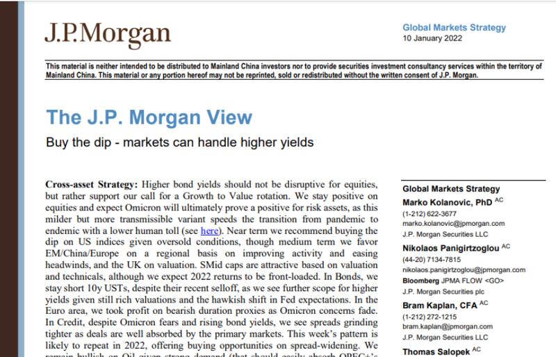 Incluso el banco de inversión JP Morgan emitió un informe en el que recomendaba salir a comprar acciones y advertía que los mercados pueden convivir con la amenaza de la variante Ómicron así como también pueden soportar un contexto de tasas de interés en ascenso.