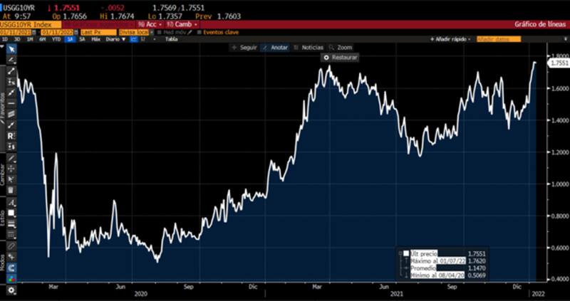 Esto generó una fuerte suba en los rendimientos de los bonos del Tesoro estadounidense, con la tasa a 10 años colocándose por encima de 1,77%, su mayor nivel en 2 años.
