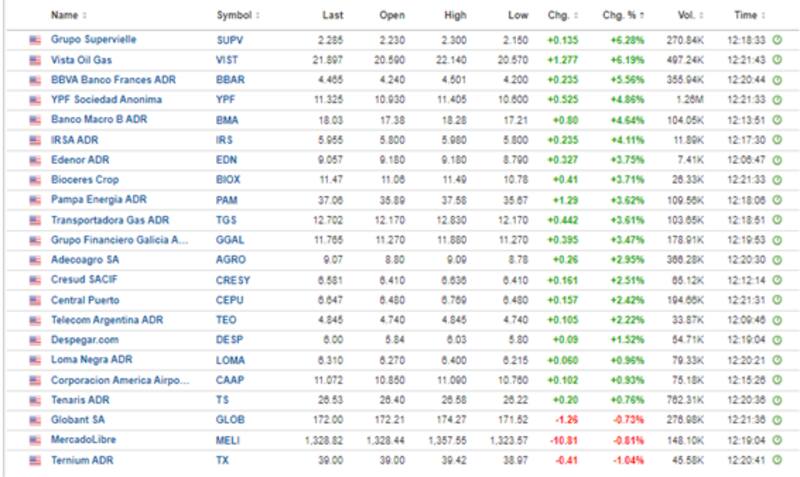El resto de las acciones argentinas también operan con subas que van desde 0,75%, como el caso de Ternium, hasta los 3,75% de Edenor.