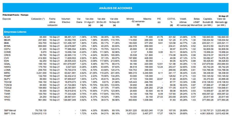Las principales subas en el Merval llegaron por el lado de energético, que ocuparon los primeros cuatro puestos. Transener avanzó 8,17% durante la rueda y a continuación vinieron Transportadora Gas del Norte (7,82%), Central Puerto (6,98%) y Edenor (6,23 por ciento). Un tanto más acabo quedó Mirgor (4,62%), que viene teniendo un septiembre furioso, con una suba de 21,05% en pesos a lo largo del mes.
