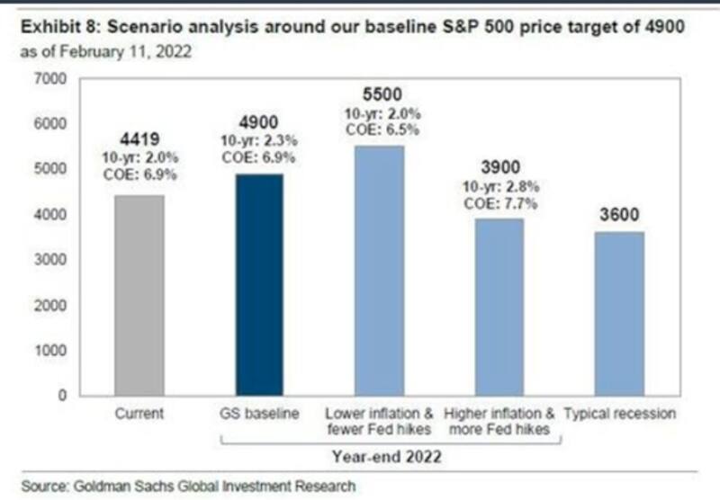 Sin embargo, si la inflación es más elevada, proyecta una suba en los rendimientos más importante y por lo tanto, un objetivo aún más bajista en el S&P500, a 3900 puntos. Ese escenario implicaría una baja del 11% respecto de los valores actuales.