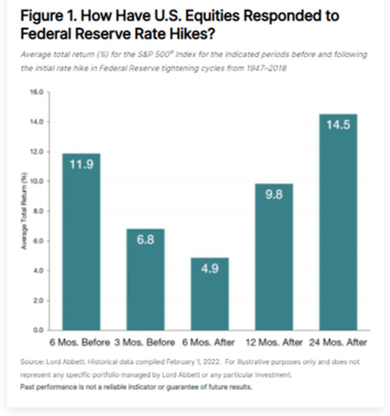 Según un estudio elaborado por los analistas del fondo de inversión Lord Abbett, la suba de tasas suele representar un punto de entrada para el posicionamiento en acciones.