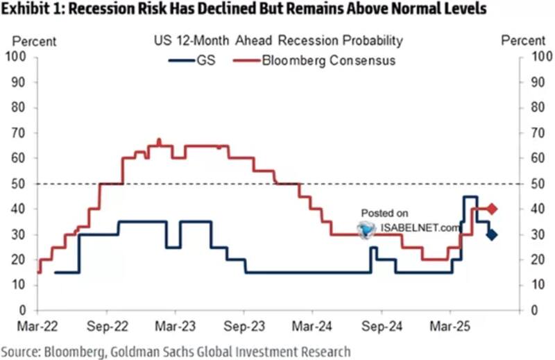 Según el consenso del mercado, hoy la probabilidad de una recesión en EEUU es del 40%, mientras que, por ejemplo, Goldman Sachs le otorga un 30% de chances.