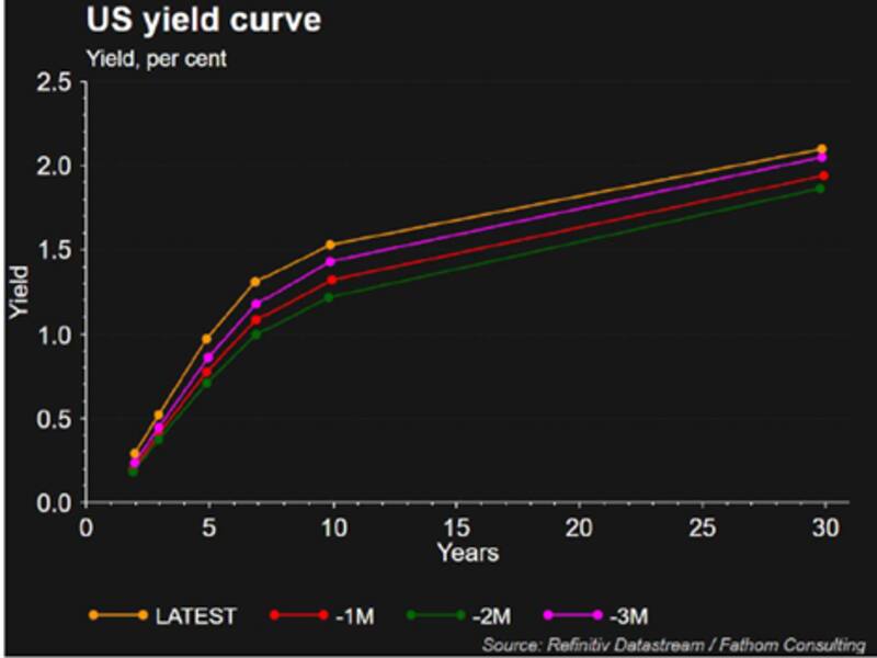 La curva soberana norteamericana se ha desplazado al alza en los últimos tres meses. Hoy se ubica operando con la tasa corta en niveles de 0,2%, del 1% en el plazo a 5 años, de 1,6% a 10 años y de 2,1% a 30 años. Este incremento implica un riesgo para los mercados por varios motivos.