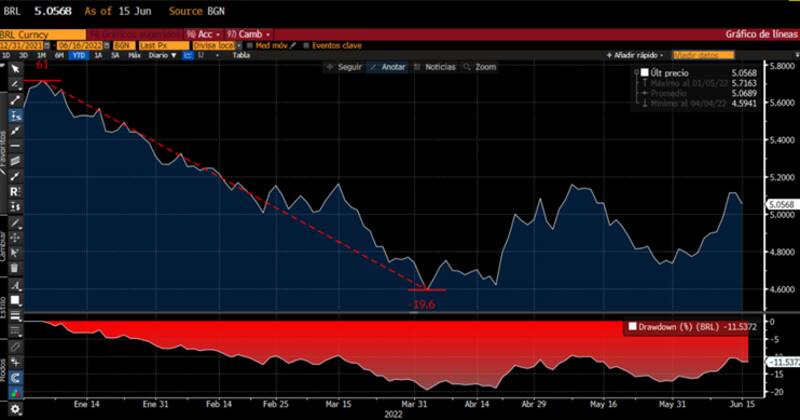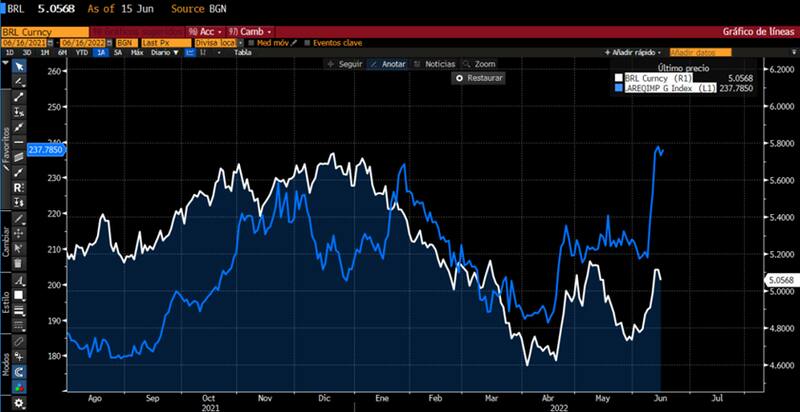 Y agregó que también influye el contexto en Estados Unidos, donde la Reserva Federal (Fed) se ve obligada a endurecer sus medidas para que la inflación merme llevando a que el Dólar Índex se fortalezca en comparación al resto de las monedas, pegándole entre otros al real. "Sin ir más lejos, en lo que va del mes el tipo de cambio en Brasil pasó de R$ 4,7 a R$ 5,10", apuntó.