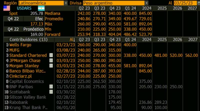 A su vez, Morgan Stanley hizo estimaciones hacia finales de 2024, situando al dólar oficial a $ 892,04. La cifra implicaría un crecimiento de 54% respecto a este año. Esto es acompañado por el BBVA, que estimó que el tipo de cambio llegaría a $ 845 el próximo año.
