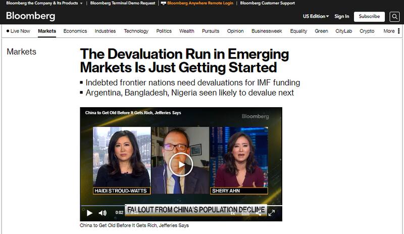 El portal estadounidense especializado en finanzas Bloomberg anticipó que la Argentina al igual que Bangladesh y Nigeria serán las próximos tres naciones en devaluar su moneda respecto al dólar.