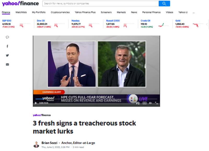 Es posible que las acciones se hayan estabilizado después de la caída de mediados de mayo, pero aumentan las señales de advertencia de que la economía está entrando en una mala racha y los mercados podrían volver al modo de venta, alertó este jueves el editor general del portal Yahoo Finance, Brian Sozzi.