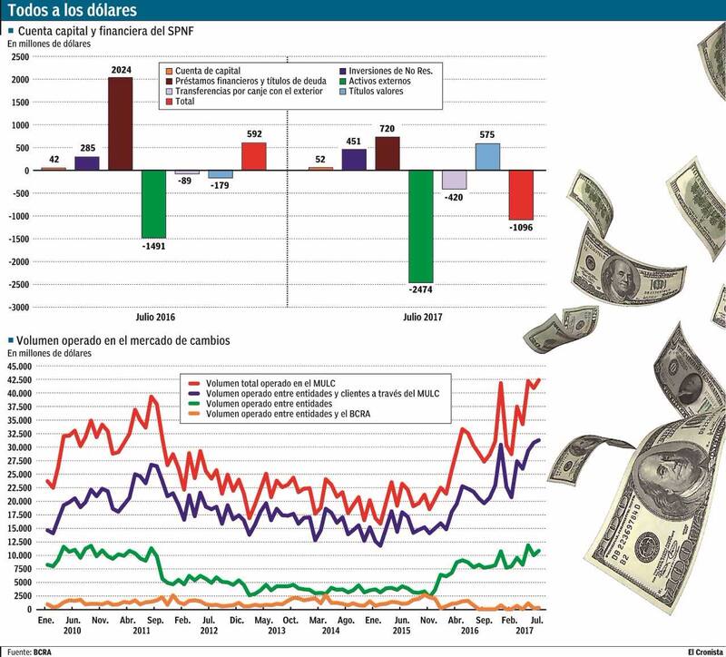 A medida que aumentaron las compras de ahorristas locales, disminuyeron los ingresos de préstamos financieros. Así, la cuenta capital y financiera del "Sector Privado No Financiero" (SPNF) registró egresos netos por u$s 1.096 millones, resultado en una reversión de unos u$s 1.700 millones respecto a julio del año anterior.