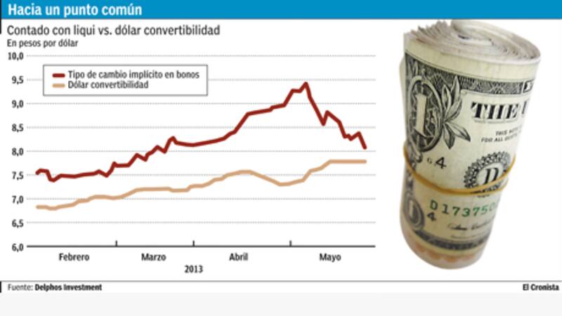 Teniendo en cuenta un contado con liquidación de $8,40 y un dólar convertibilidad de $7,77, que surge de dividir la base monetaria por las reservas internacionales, la brecha se ubica en torno al 8% por estos días, agregaron.