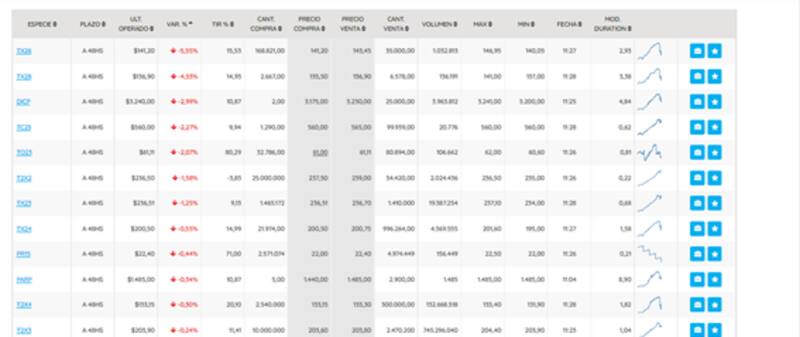 Los bonos más largos, como los TX28 y TX26 pierden 4,5% y 5,54% respectivamente.