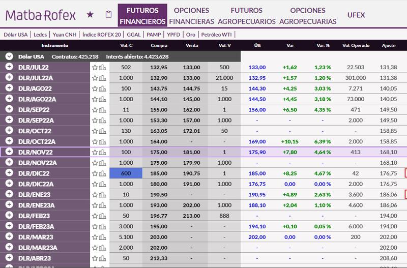 En los vencimientos a agosto y septiembre, los futuros suben entre 4% y 3%, mientras que de octubre a noviembre, los mismos avanzan entre 4,5% y 6,5%.
