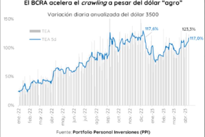 Desde Portfolio Personal Inversiones detallaron que el BCRA vuelve a acelerar el tipo de cambio en el marco del dólar agro.