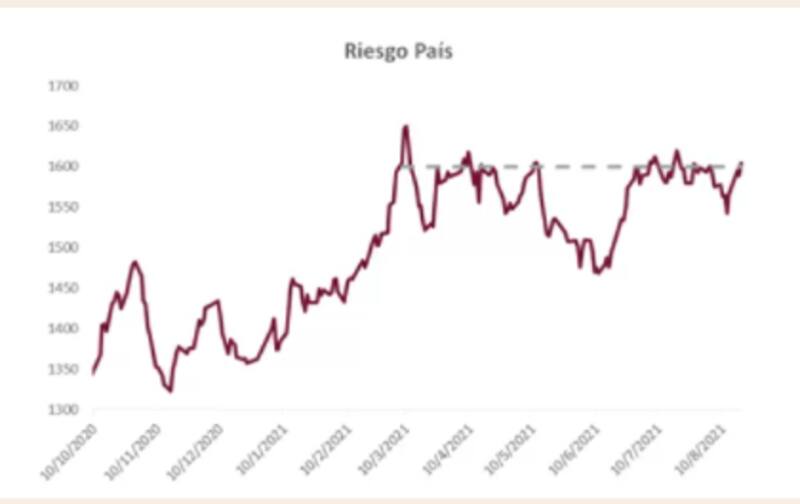 El riesgo país lleva cuatro meses en la zona de 1600 puntos, sin poder generar una baja importante, lo cual implica que los bonos continúan operando con un elevado nivel de desconfianza, con los inversores poniendo bajo sospecha la capacidad y voluntad de pago del Gobierno.