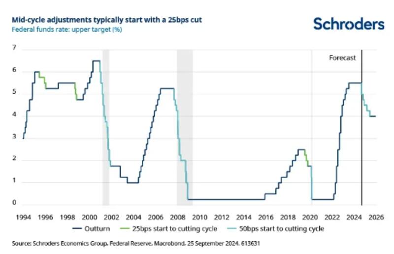 George Brown, Senior US Economist de Schroders, indicó que si se produce un ciclo agresivo de recortes de tasas y, al mismo tiempo, la economía de EEUU resulta más resistente, las tasas de interés podrían acabar siendo demasiado laxas.