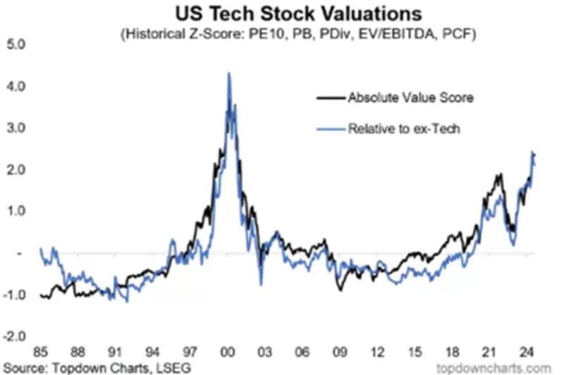 No son solo las acciones tecnológicas las que muestran altas valuaciones, sino el índice en términos generales.