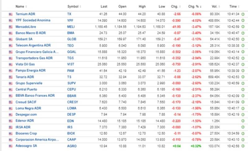 En cuanto a las acciones argentinas en Wall Street, estas operan en rojo.