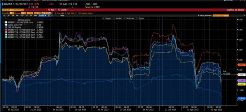Todos los tramos de la curva soberana argentina vuelven a abrir a la baja el miércoles.