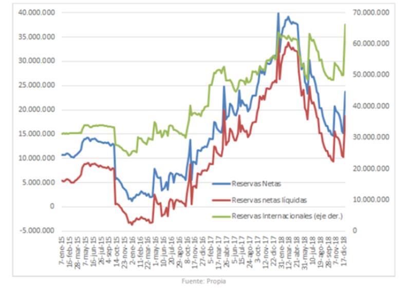 Se espera que en diciembre de 2019 de dejar la Casa Rosada Macri deje las reservas netas positivas en casi 20 mil millones de dólares contra el saldo negativo de 3.000 millones cuando asumió en diciembre de 2015.