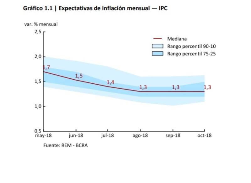 "Esta tendencia pronosticada por los analistas se encuentra en línea con la percepción del BCRA de que la aceleración de la inflación de los últimos meses fue transitoria", remarcó el Central.