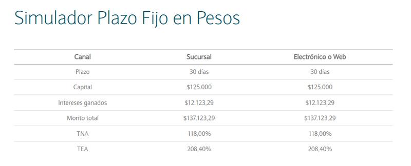 Si elegís invertir a corto plazo, es decir a 30 días, invirtiendo $ 125.000 obtendrás $ 12.123 de ganancia. Es decir que, en un mes generaste un 9,8% de intereses.