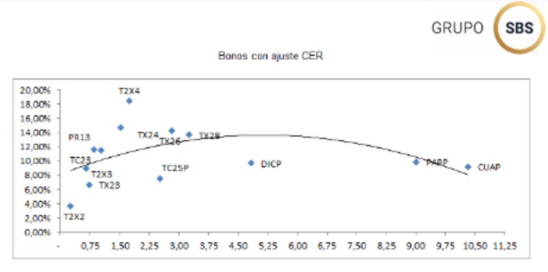Aun así, hay menos compradores de bonos CER y eso lo refleja la curva en pesos.