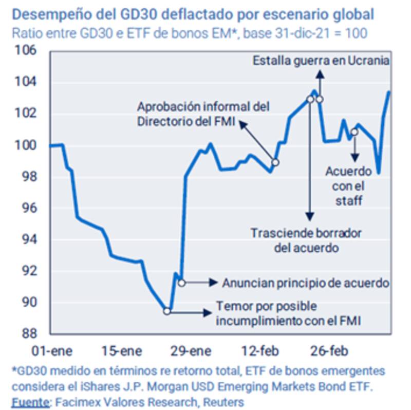 "Los Globales tuvieron un desempeño muy superior al de la deuda emergente a medida que se fueron dando pasos hacia un acuerdo con el FMI. La confirmación de que Argentina pagaría los vencimientos de enero y febrero marcó el piso para las valuaciones. Hacia adelante, la aprobación del Congreso y el consentimiento del Directorio del FMI aparecen como eventos que esperamos que ´destraben´ valor", comentaron.