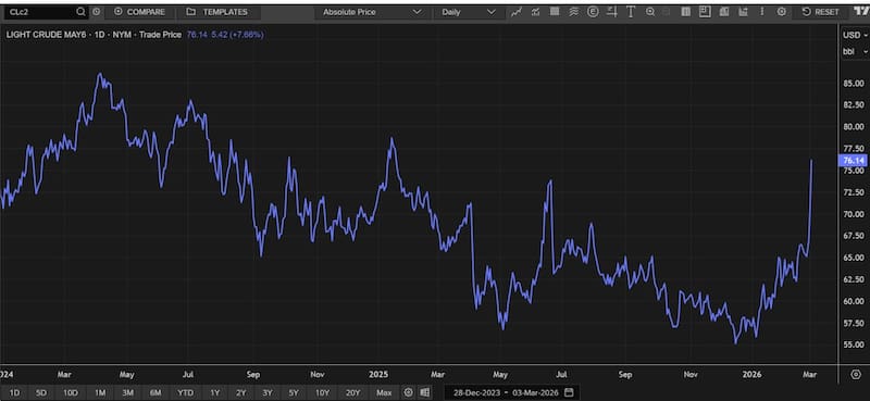 Esto provocó una fuerte suba de la volatilidad y una disparada del precio del petróleo, el cual se ubica por encima de los u$s 75 en el caso del crudo WTI y por encima de los u$s 83 en el caso del Brent.