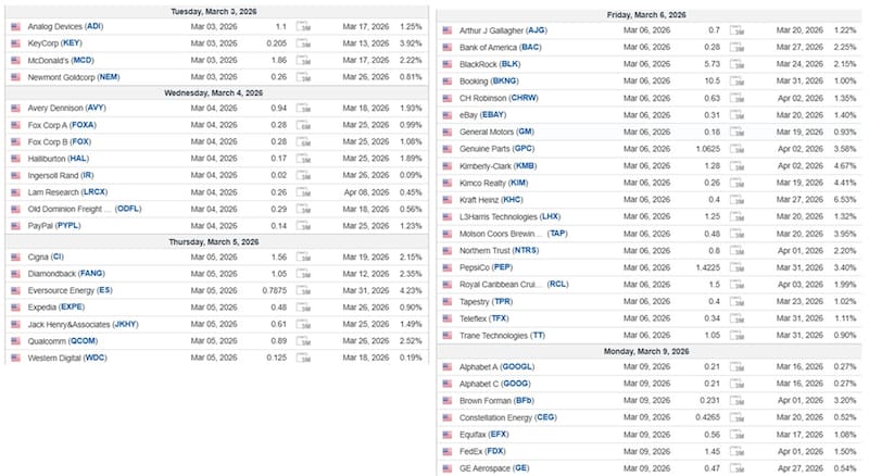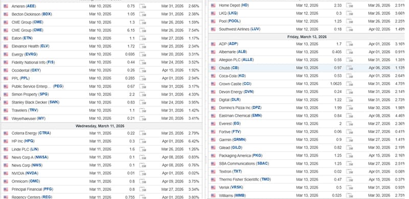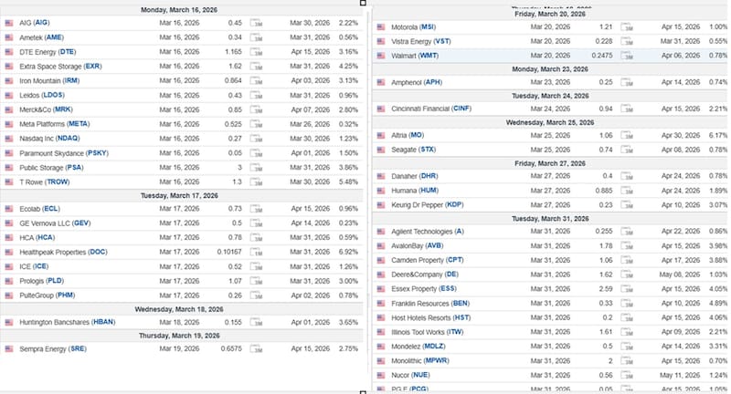 El mes de marzo presenta una avalancha de pago de dividendos de grandes compañías en Wall Street.