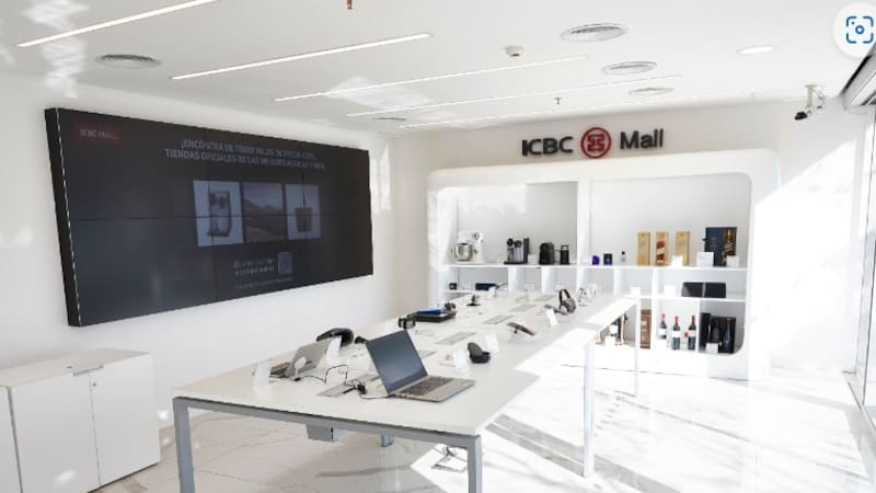 Dentro de ese concepto se muestran productos (están solo en exhibición, no se pueden retirar de ahí) que se comercializan ensu "ICBC mall" de manera on line.