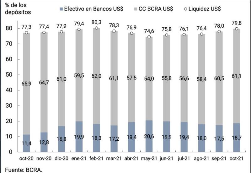 Esta visión del nivel de liquidez de los bancos es compartida también por economistas y analistas del sector privado. "Casi el 80% de los depósitos totales en dólares están respaldados por efectivo y liquidez por parte de los bancos. Si sacamos al sector público (que no va a ´sacar sus dólares´), este número está arriba del 95%. Un sistema financiero en dólares más líquido no se podía conseguir", marcó Juan Ignacio Paolicchi, economista de Empiria.