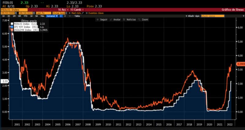 Esto significa que la Fed probablemente tenga que seguir subiendo la tasa y manteniendo su sesgo hawkish para que la inflación baje del 8,5% actual hacia el objetivo del 2% que tiene el Banco Central de EEUU.