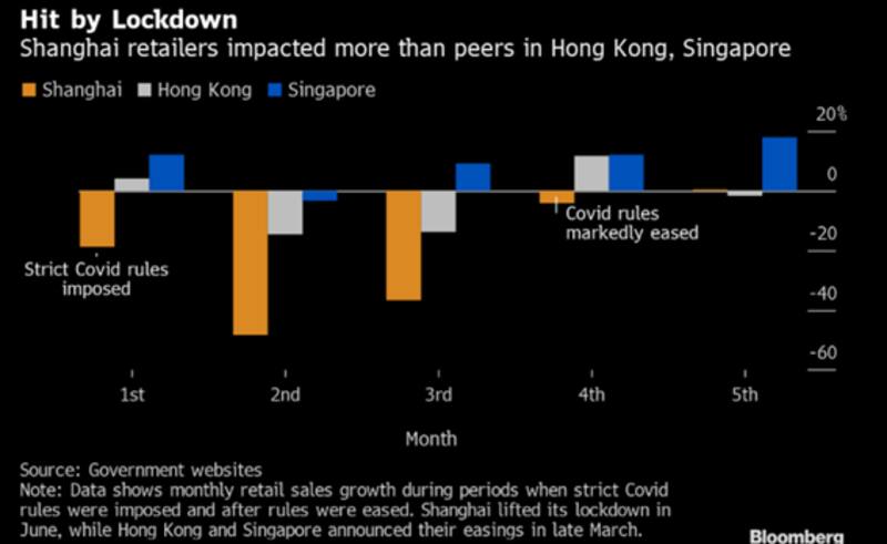 Así, algunos indicadores muestran que Shanghái está tardando más en recuperarse que Hong Kong y Singapur después de que se flexibilizaran las reglas en esas ciudades.