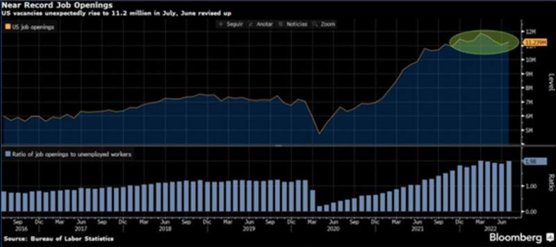 Por otro lado, el informe de empleo JOLTS arrojó que el total de ofertas laborales abiertas suman los 11,2 millones y que existen dos ofertas laborales abiertas por cada personal buscando empleo en EEUU.