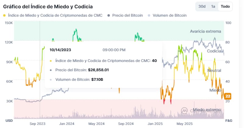 Desde la óptica del análisis técnico, una corrección tras un rally del 70% no es ni anómala ni catastrófica. “Entonces, ¿por qué el Fear & Greed Index se arrastra por la zona de 15 puntos —miedo extremo— como si estuviéramos ante un derrumbe estructural?”, se pregunta el experto.