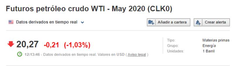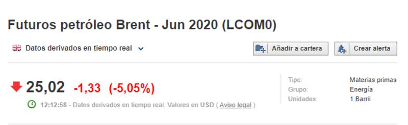 Hoy el crudo Brent, de referencia en Europa, retrocede más de 6%, a u$s 25 el barril al tiempo que el West Texas, referente en EE.UU., baja más de 1%, a u$s 20. El lunes ya puso en peligro esta barrera psicológica.
