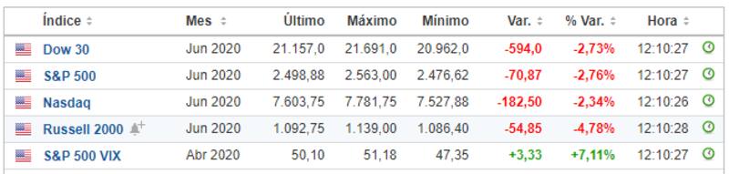 Horas antes, Wall Street puso punto y final al peor trimestre de su historia con caídas superiores al 2% en sus principales índices. Y ante las malas noticias de la pandemia en EE.UU., los futuros auguran más ventas hoy en la plaza neoyorquina.