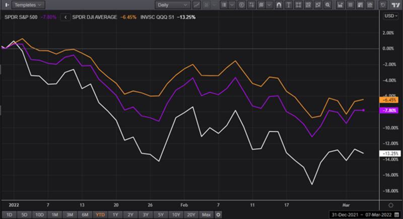 Por su parte, el Nasdaq es el índice líder que más ha caído, con una pérdida de 13,25%.