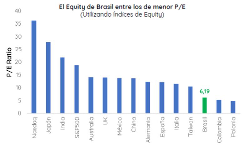 Con una visión similar, desde PPI se mantienen optimistas sobre las acciones brasileras ya que encuentran que las mismas lucen baratas, medidas por el ratio Price Earnings (P/E).