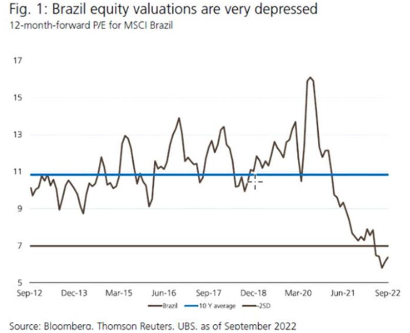 "Las valuaciones de las acciones de Brasil están en mínimos históricos. Los múltiplos de las acciones brasileñas han seguido bajando de calificación este año, a pesar de su sólido desempeño impulsado por el crecimiento de las ganancias", dijo.