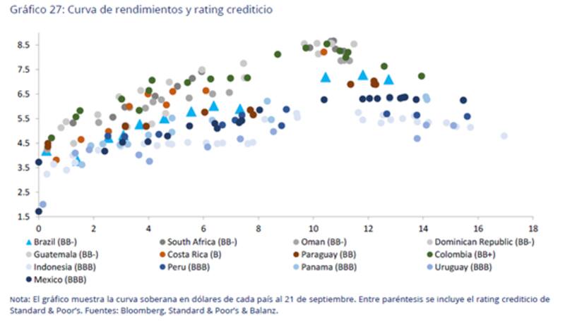 Como referencia regional, Brasil tiene la misma clasificación (bajo S&P) que Guatemala y Honduras, se encuentra un escalón por debajo de Paraguay (BB) y a dos de Colombia (BB+).