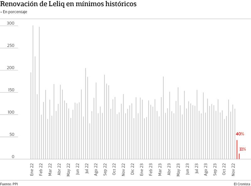 Hasta el cambio de mandato, restan cuatro licitaciones de Leliq, con un total de $ 6,3 billones (59% del stock), y los analistas de PPI advierten que si los bancos no perciben un cambio de tono respecto a estos instrumentos en las próximas apariciones públicas de Milei la tendencia de salida precautoria podría intensificarse.