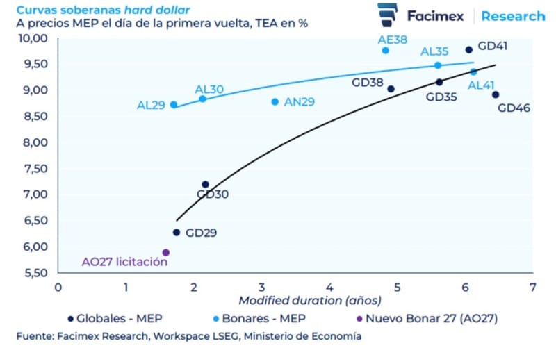 “El nuevo Bonar 2027 se asemeja mucho más a un a una curva de Bopreal, más que a una curva de Bonar con duration corta”, indicó.