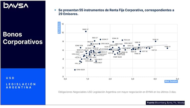 En comparación con la deuda corporativa, Bagilet agregó que en términos de tasa, el Bonar 2027 debería haber cortado a una TNA aproximadamente del 6,6%, aunque el mercado convalidó un rendimiento sensiblemente menor.