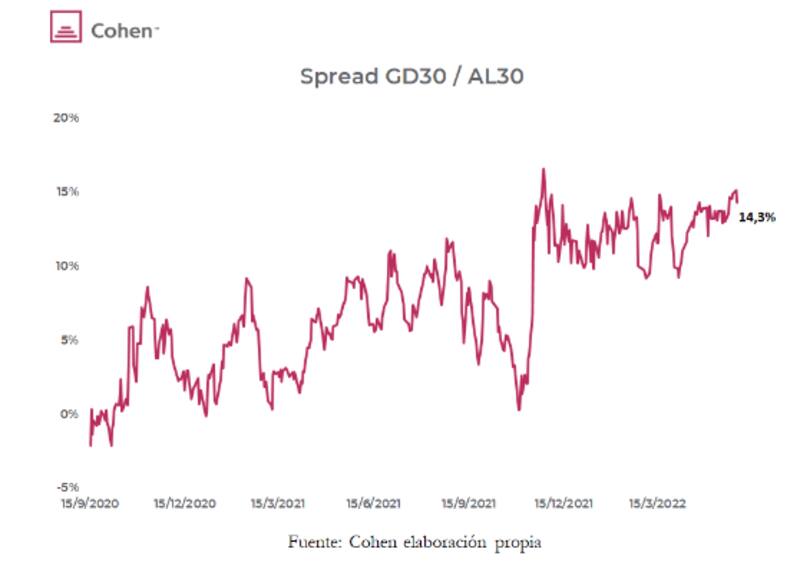 Según los analistas de Cohen, el spread actual entre las cotizaciones de los bonos GD30 y AL30 se amplió a zonas de máximos históricos y ven una oportunidad.