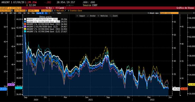 "Las paridades retrocedieron a la zona de 28% a 36%, niveles en los que deberíamos encontrar mayor soporte técnico teniendo en cuenta los recuperos históricos en reestructuraciones emergentes (30% a 35%) y un programa con el FMI que limita el margen para seguir profundizando los desequilibrios", comentó.